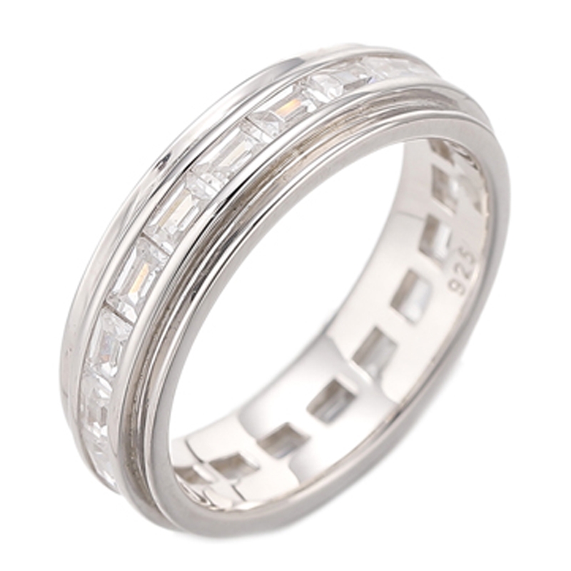 3.93Baget Gökkuşağı Kübik Zirkonyum Rodyum Gümüş Sonsuzluk Yüzüğü