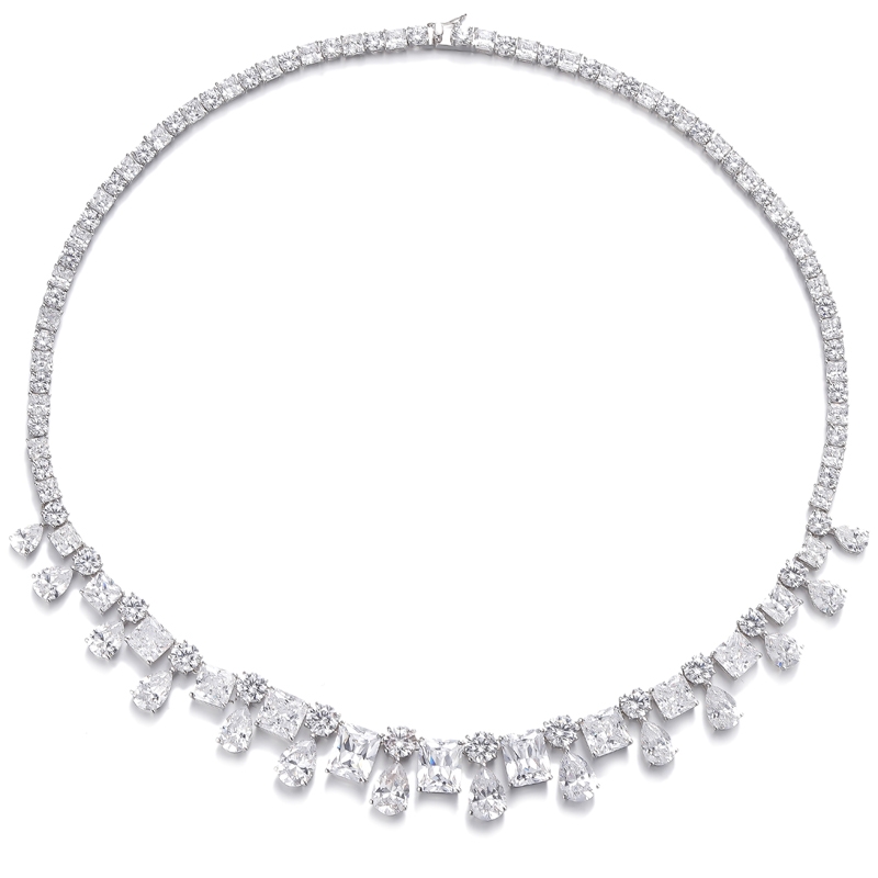 49.32Sekizgen Elmas Sarı ve Armut Şekli Beyaz Kübik Zirkonyum Rodyum Gümüş Kolye