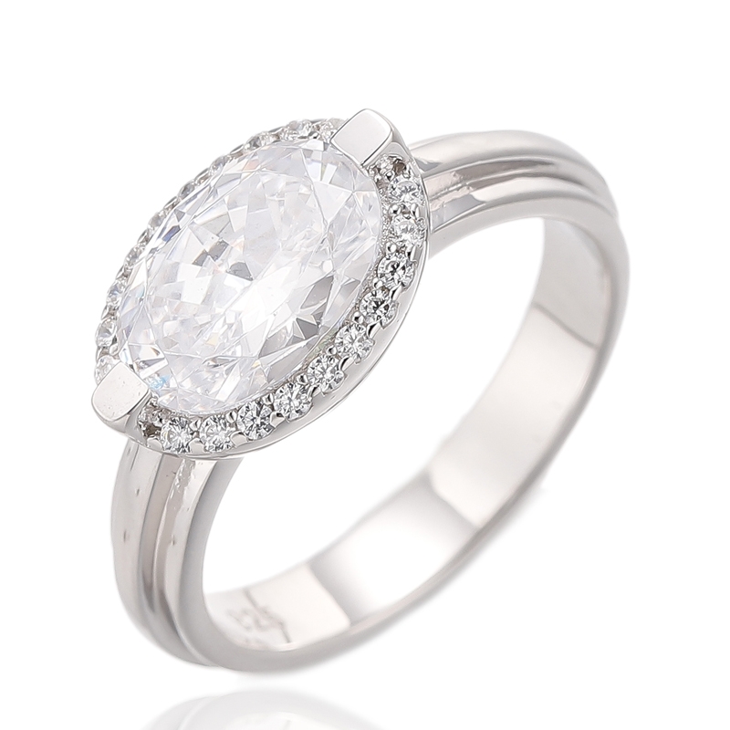 4.57Gül Altın Kaplamalı Oval Şekilli Elmas Pembe ve Yuvarlak Beyaz Kübik Zirkonyum Gümüş Yüzük