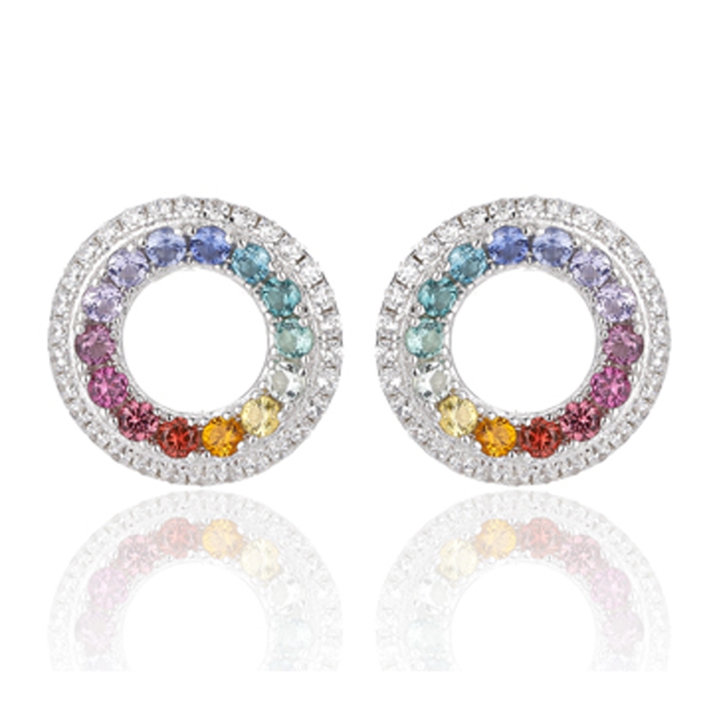 4.54Yuvarlak Gökkuşağı ve Beyaz Kübik Zirkonyum Rodyum Gümüş Küpe