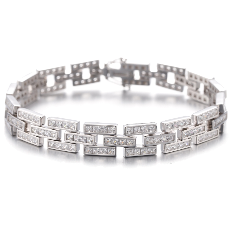 23.47Kare Gökkuşağı Kübik Zirkonyum Rodyum Gümüş Bileklik